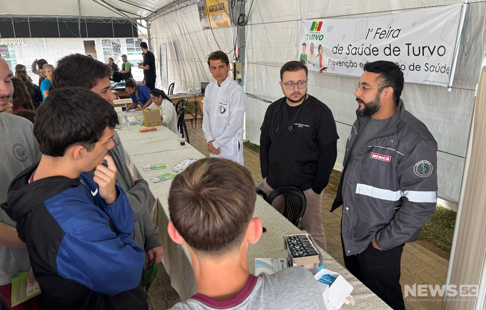 Muitas pessoas participaram da 1ª Feira da Saúde realizada pela prefeitura de Turvo, através da Secretaria de Saúde. A ação focada na prevenção e promoção do bem-estar da população realizada no Dia Mundial da Saúde, no período matutino, foi feita na tenda da Feira da Agricultura Familiar e do artesanato em virtude da instabilidade do tempo.