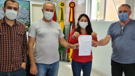 FOTO (Assecom Sombrio): Documento entregue por representantes do diretório município foi recebido pelo prefeito Zênio e prefeita eleita Gislaine...