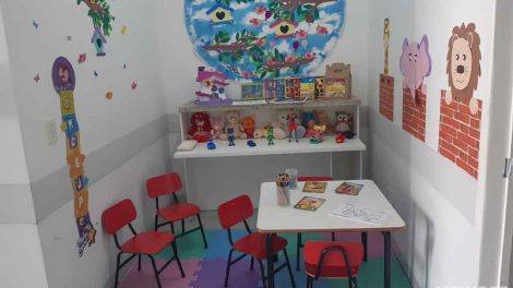 A Secretaria de Saúde de Araranguá, por meio do setor de Imunização, cria estratégias para deixar as crianças mais à vontade no momento de espera...