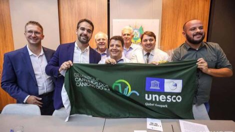 PRESIDENTE DO GEOPARQUE ELISANDRO MACHADO, O FANICA, SE ENCONTRA COM O GOVERNADOR EDUARDO LEITE Representantes do Geoparque Mundial da UNESCO...