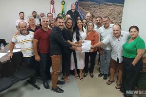 O prefeito de Passo de Torres, Valmir Rodrigues, apresentou nesta quarta-feira (12) ao deputado estadual Zé Milton o projeto de reconstrução da ponte pensil...