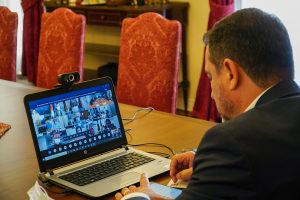 O governador Carlos Moisés participou do debate em torno da vacinação contra a Covid-19, que reuniu chefes de Estado integrantes do Fórum de Governadores e o...